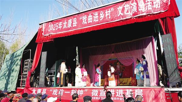 初冬時(shí)節(jié),陽(yáng)光和煦。近日,太康縣道情劇團(tuán)開(kāi)展送戲下鄉(xiāng)活動(dòng),在轉(zhuǎn)樓鎮(zhèn)周莊村為群眾上演了《珍珠塔》《王金豆借糧》等經(jīng)典道情劇目,豐富了群眾的精神文化生活。圖為《珍珠塔》演出現(xiàn)場(chǎng)。記者 張洪濤 攝