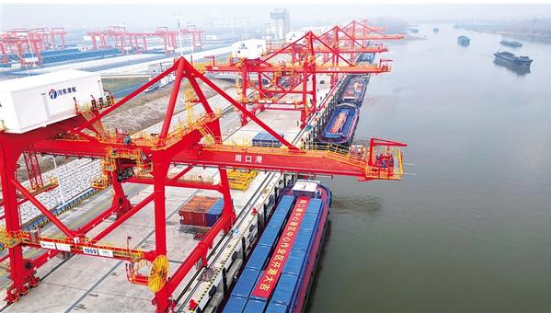 作為全國36個(gè)內(nèi)河主要港口之一,周口港已開通24條國內(nèi)集裝箱航線,打通19條外貿(mào)接力航線,實(shí)現(xiàn)“箱通世界、貨運(yùn)全球”。今年1月至11月,周口港完成貨物吞吐量4740.5萬噸,集裝箱吞吐量16萬標(biāo)箱,同比增長(zhǎng)9.5%。隨著周口港中心港區(qū)中心作業(yè)區(qū)正式投運(yùn),這幅數(shù)據(jù)藍(lán)圖將進(jìn)一步擴(kuò)展。