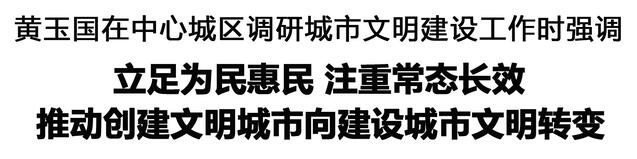 調(diào)研中,黃玉國強調(diào),從創(chuàng)建文明城市到建設城市文明,是工作理念的轉變,也是工作實踐的深化拓展。要更加注重常態(tài)長效,堅持融入日常、抓在經(jīng)常,強化機制保障,鞏固拓展文明城市創(chuàng)建成果。要更加注重精細治理,強化問題導向,下足“繡花功夫”,提升網(wǎng)格化管理服務質(zhì)效,讓群眾生活更方便、更舒心。要更加注重成風化人,大力培育和踐行社會主義核心價值觀,加強教育引導和典型選樹,堅持法治和德治相結合,弘揚崇德向善的文明風尚,不斷提升市民文明素養(yǎng),讓文明內(nèi)化于心、外化于行。要更加注重全民參與,堅持問計于民、問需于民、問效于民,搭建參與平臺,凝聚多元合力,營造共建共治共享的良好氛圍。