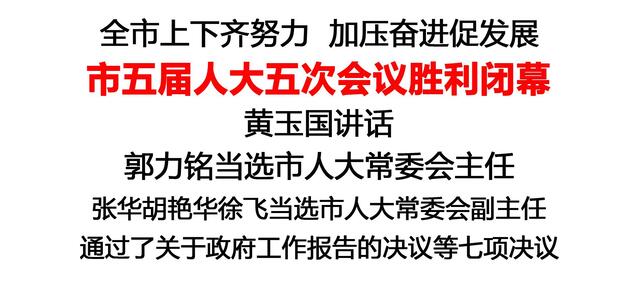 根據(jù)選舉結(jié)果,郭力銘當(dāng)選周口市第五屆人民代表大會(huì)常務(wù)委員會(huì)主任,張華、胡艷華、徐飛當(dāng)選周口市第五屆人民代表大會(huì)常務(wù)委員會(huì)副主任,胡東河當(dāng)選周口市第五屆人民代表大會(huì)常務(wù)委員會(huì)秘書(shū)長(zhǎng),王軍、郝強(qiáng)、段然、賈衛(wèi)東當(dāng)選周口市第五屆人民代表大會(huì)常務(wù)委員會(huì)委員。