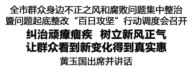 本報(bào)訊(記者 王艷 李瑞才)2月27日,全市群眾身邊不正之風(fēng)和腐敗問(wèn)題集中整治暨問(wèn)題起底整改“百日攻堅(jiān)”行動(dòng)調(diào)度會(huì)召開(kāi),認(rèn)真貫徹中央紀(jì)委國(guó)家監(jiān)委部署,落實(shí)全省群眾身邊不正之風(fēng)和腐敗問(wèn)題集中整治總結(jié)暨2026年動(dòng)員部署會(huì)議要求,調(diào)度“百日攻堅(jiān)”行動(dòng),部署2026年工作,聚力攻堅(jiān)、決戰(zhàn)決勝集中整治,不斷推動(dòng)全面從嚴(yán)治黨向基層延伸,讓群眾看到新變化、得到真實(shí)惠。市委書(shū)記黃玉國(guó)出席并講話。