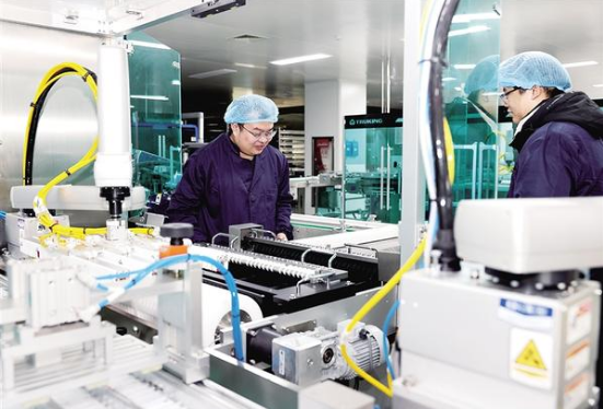從金丹科技年產(chǎn)7.5萬(wàn)噸聚乳酸生物降解新材料項(xiàng)目建設(shè)現(xiàn)場(chǎng),到巨鑫生物制藥的智能化生產(chǎn)線;從百年康鑫藥業(yè)中藥抗病毒口服液灌裝車間,到兆億傘業(yè)縫制車間里工人們指尖翻飛的忙碌身影……進(jìn)入四季度,鄲城縣動(dòng)員全縣上下以“拼”的精神、“闖”的勁頭、“干”的作風(fēng),奮力沖刺全年經(jīng)濟(jì)社會(huì)發(fā)展目標(biāo)。圖為百年康鑫藥業(yè)智能化生產(chǎn)線。