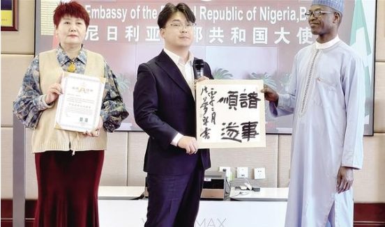 3月11日,周口市青年書法家張夢宇受邀前往尼日利亞聯(lián)邦共和國駐華大使館,參加中外文化交流活動,并向使館外交官贈送書法作品,以筆墨為媒,搭建起中尼兩國文化互鑒、友誼相通的橋梁。